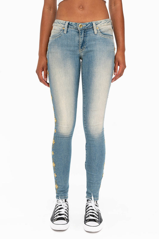 WOMENS SKINNY JEANS IN MAORIE LIGHT WITH CRYSTALS