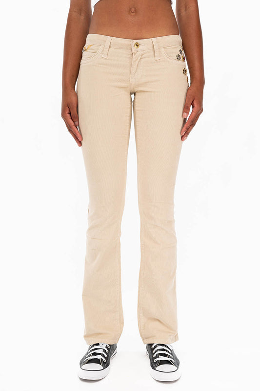 CRYSTAL FLOWER BOOT CUT BABY CORDS IN BEIGE
