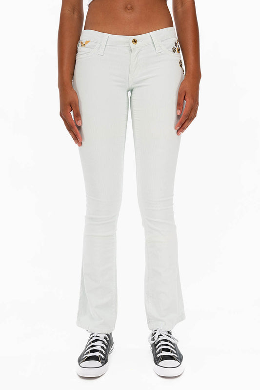 CRYSTAL FLOWER BOOT CUT BABY CORDS IN BABY BLUE