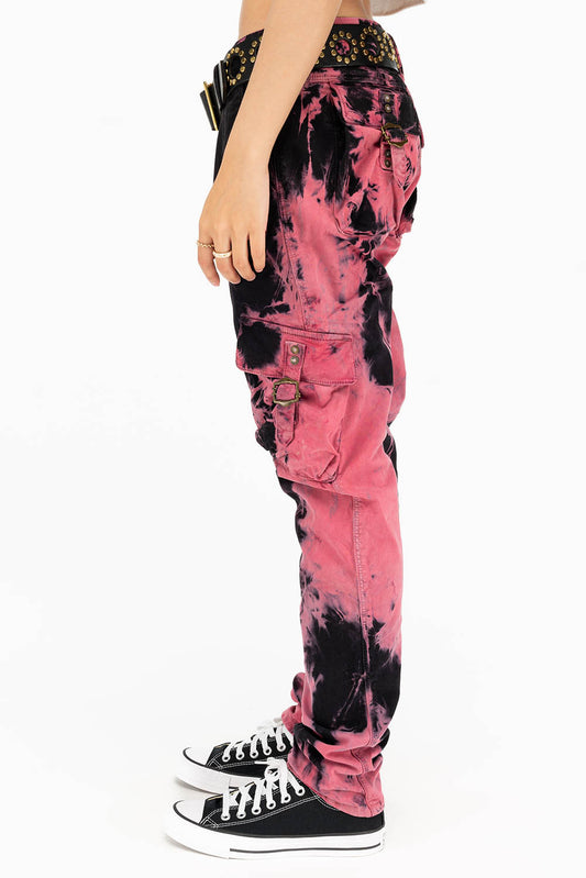 MILITARY STYLE WOMENS CARGO PANTS IN TIE DYE PINK