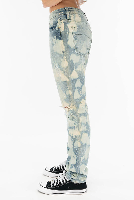 BOYFRIEND JEANS IN BLUE ELROY WASH BROKEN,DISTRESSED WITH GOLD NAILHEADS, GOLD STUDS AND & CRYSTALS