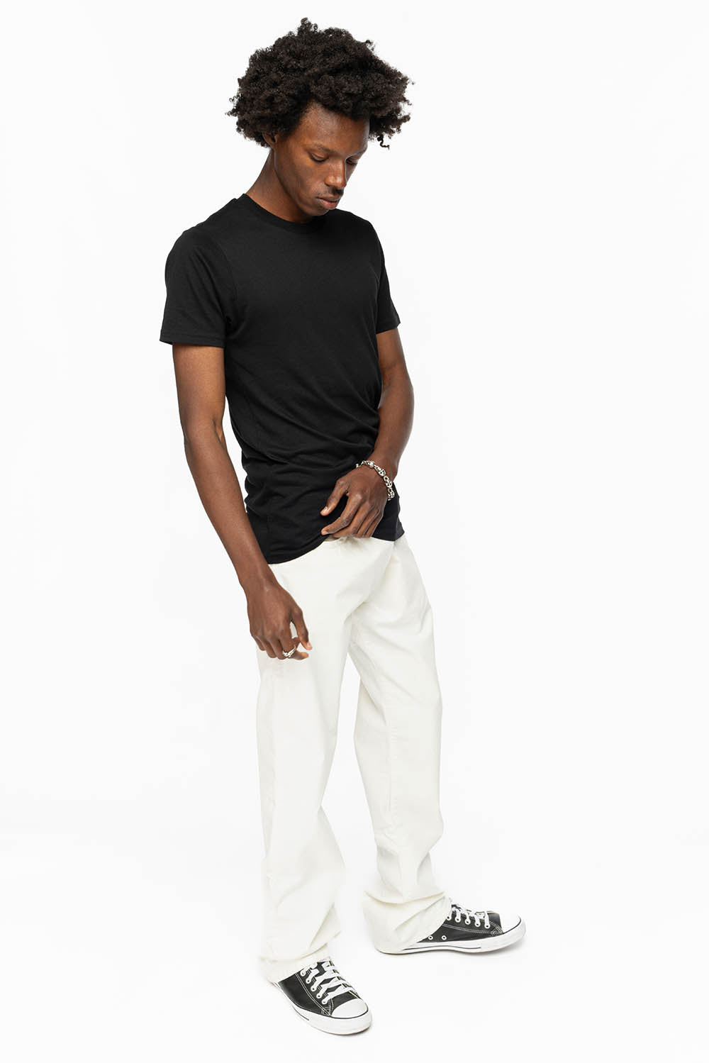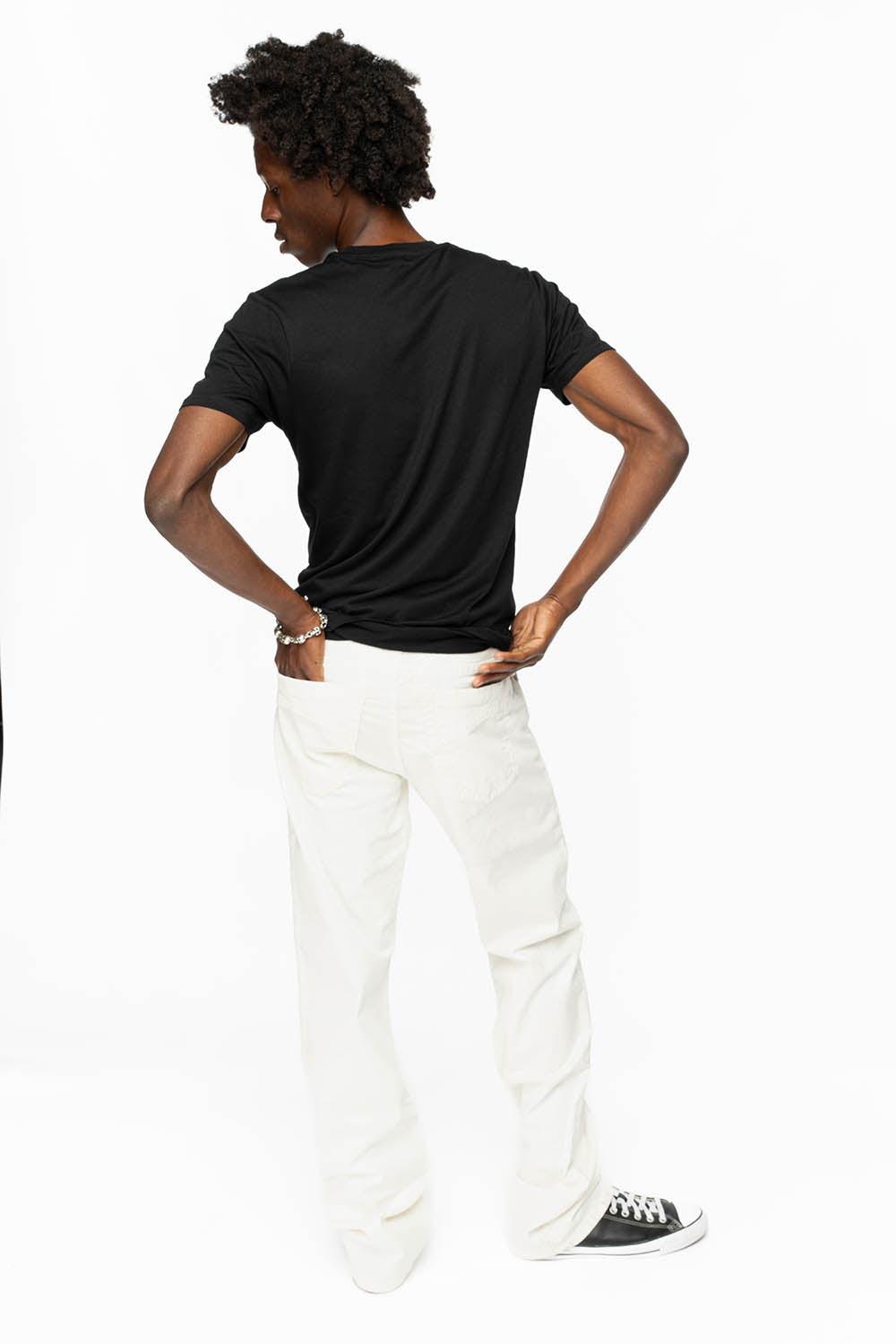 Robin's classic 5 pocket Straight leg jeans in White Madonna wash. These jeans are Robin's original 5 pocket Straight leg fit, they come in a specialty wash with tonal embroidered wings, and are constructed using lightweight stretch poplin fabric.