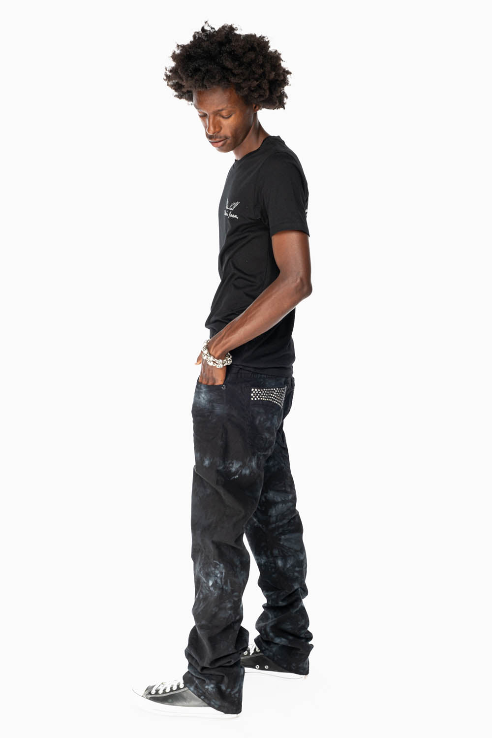 CLASSIC STRAIGHT LEG JEANS IN ASTRO BLACK WASH EMBELLISHED WITH BLK DIAMOND CRYSTALS