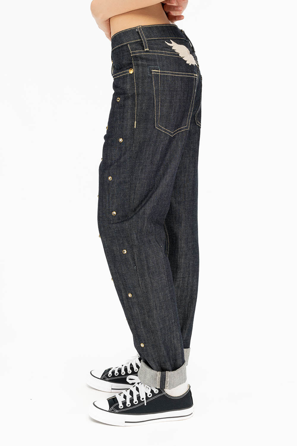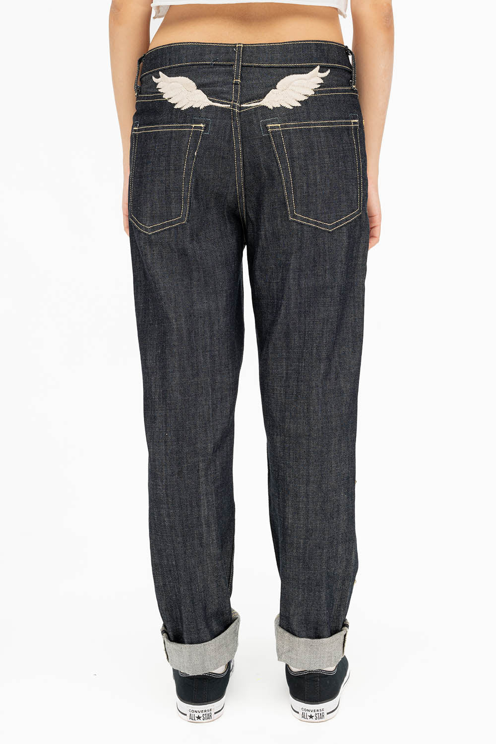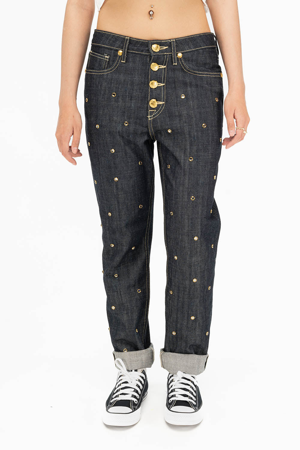 WOMENS BOYFRIEND STYLE JEANS WITH BLACK DIAMOND CRYSTALS IN RAW