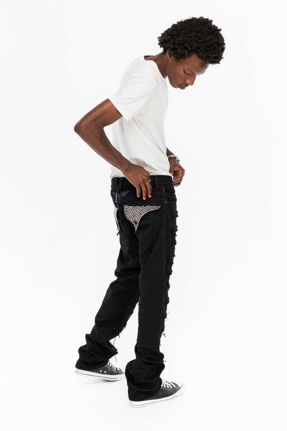ROBIN'S VINTAGE EDITION JEANS WITH CRYSTALS IN DESTROY PURE BLACK