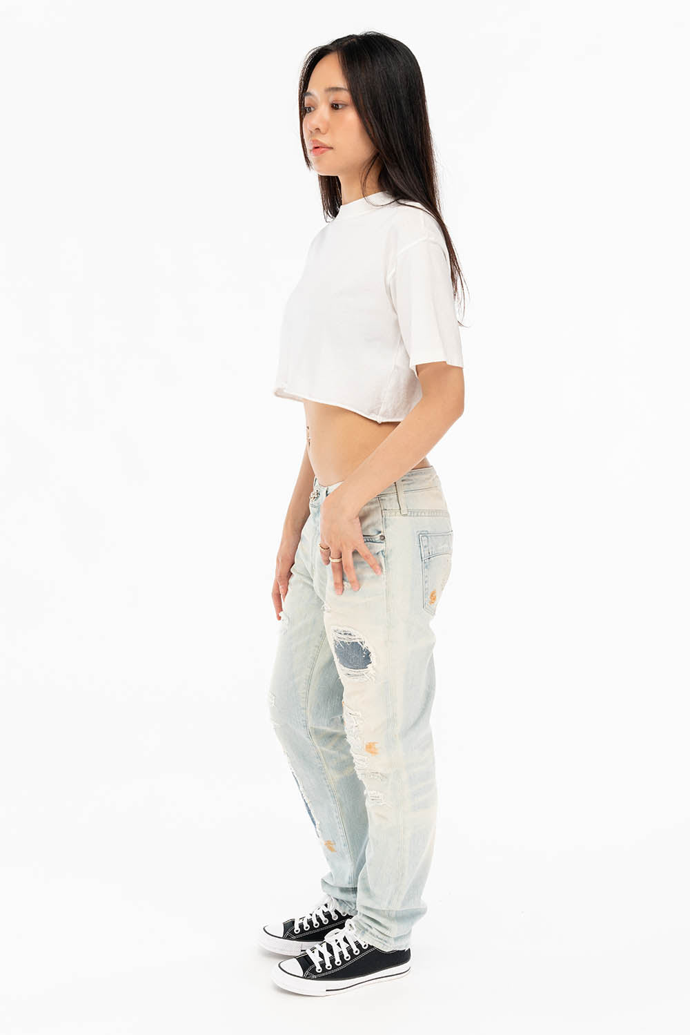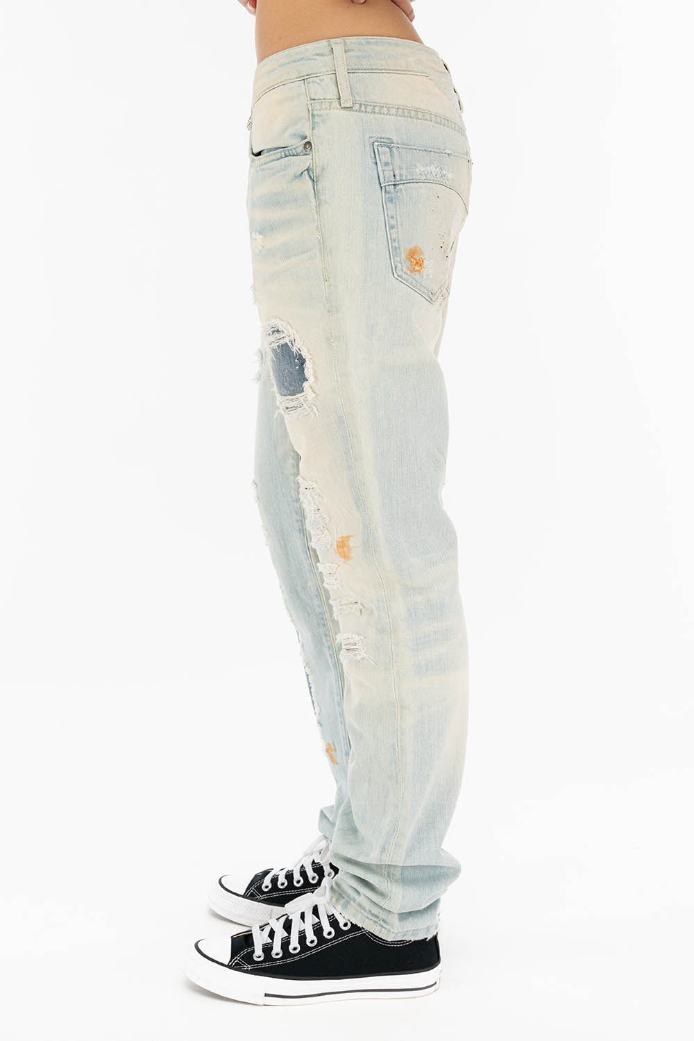 BOYFRIEND STYLE WOMENS PATCHED JEANS IN GEORGE WASH