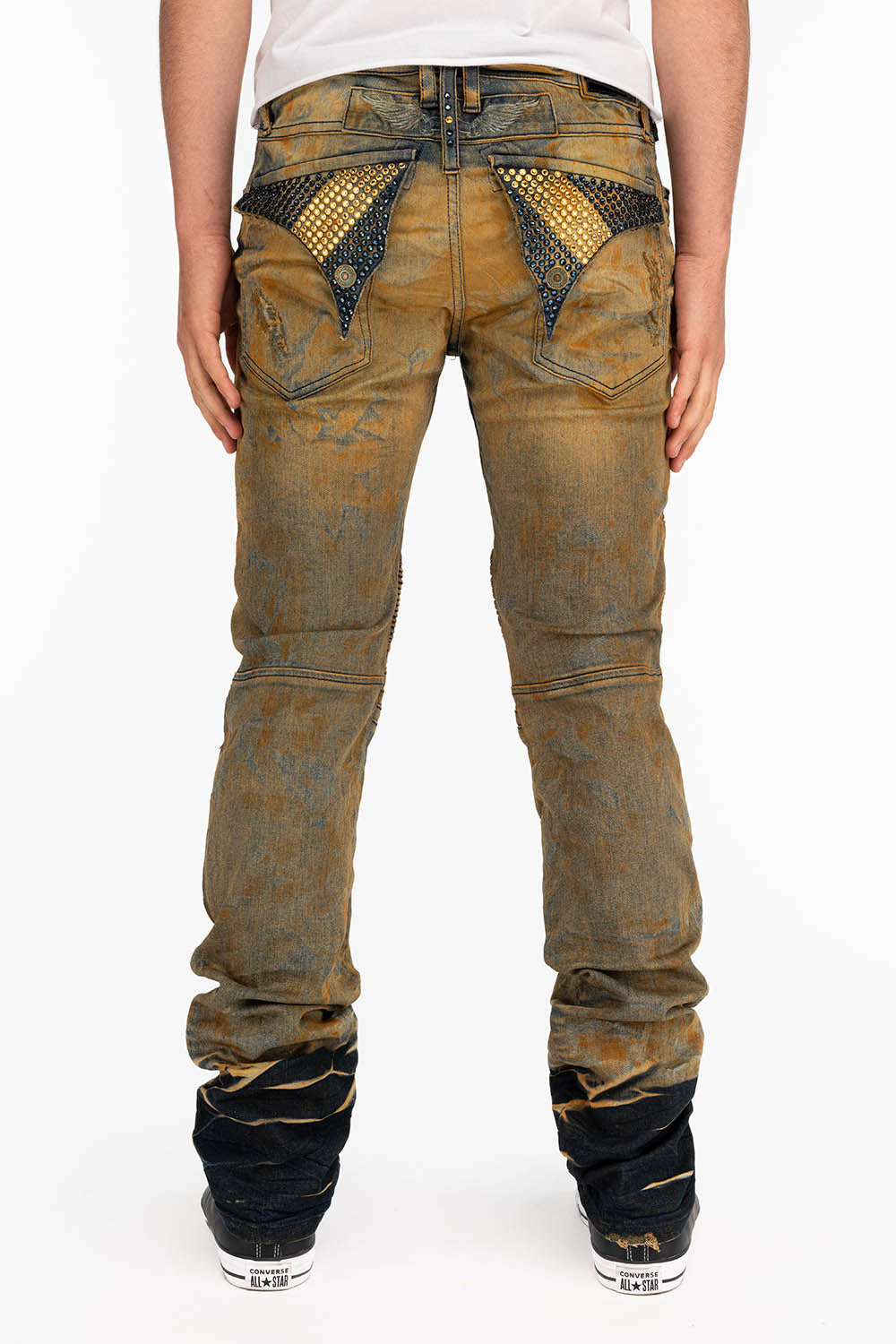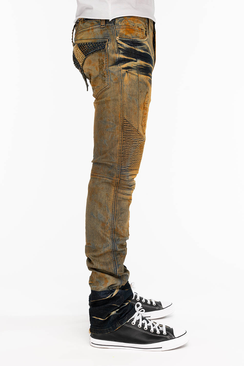 LONG FLAP MENS SKINNY BIKER JEANS WITH CRYSTALS IN CHICAGO