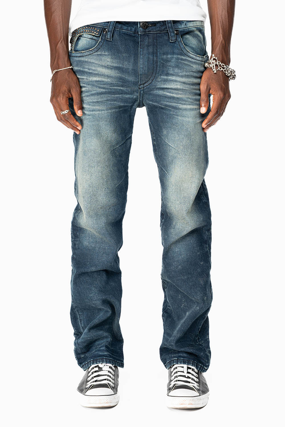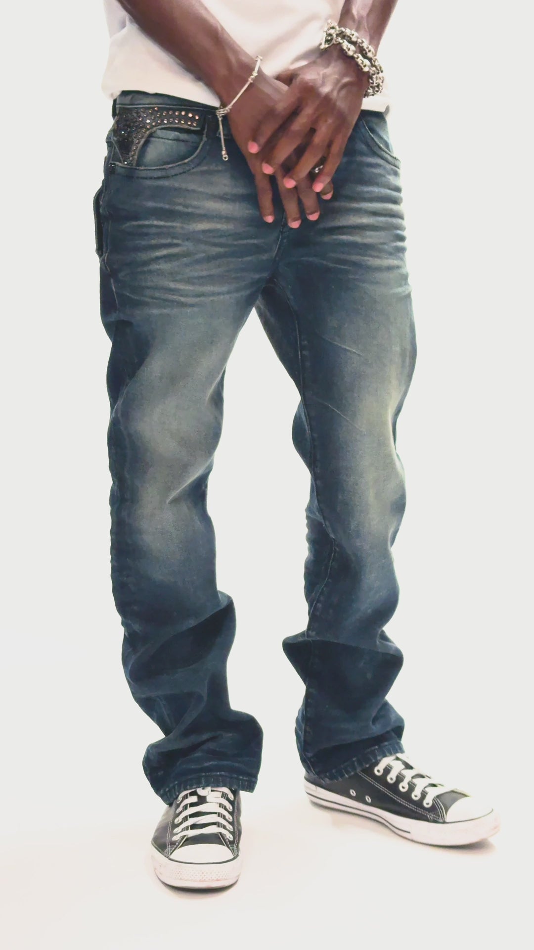 KILLER FLAP MENS STRAIGHT LEG JEANS IN ALBANY DARK FULLY EMBELLISHED WITH SMOKY TOPAZ CRYSTALS