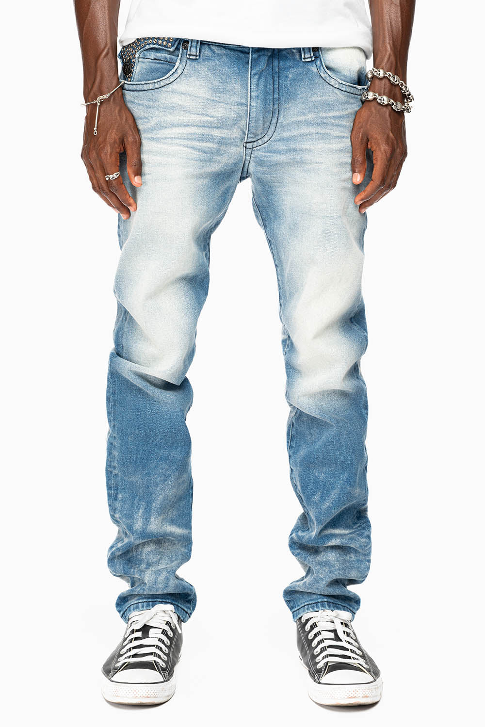KILLER FLAP SKINNY JEAN IN BLUE OMAHA MEDIUM WASH FULLY EMBELLISHED WITH CRYSTALS
