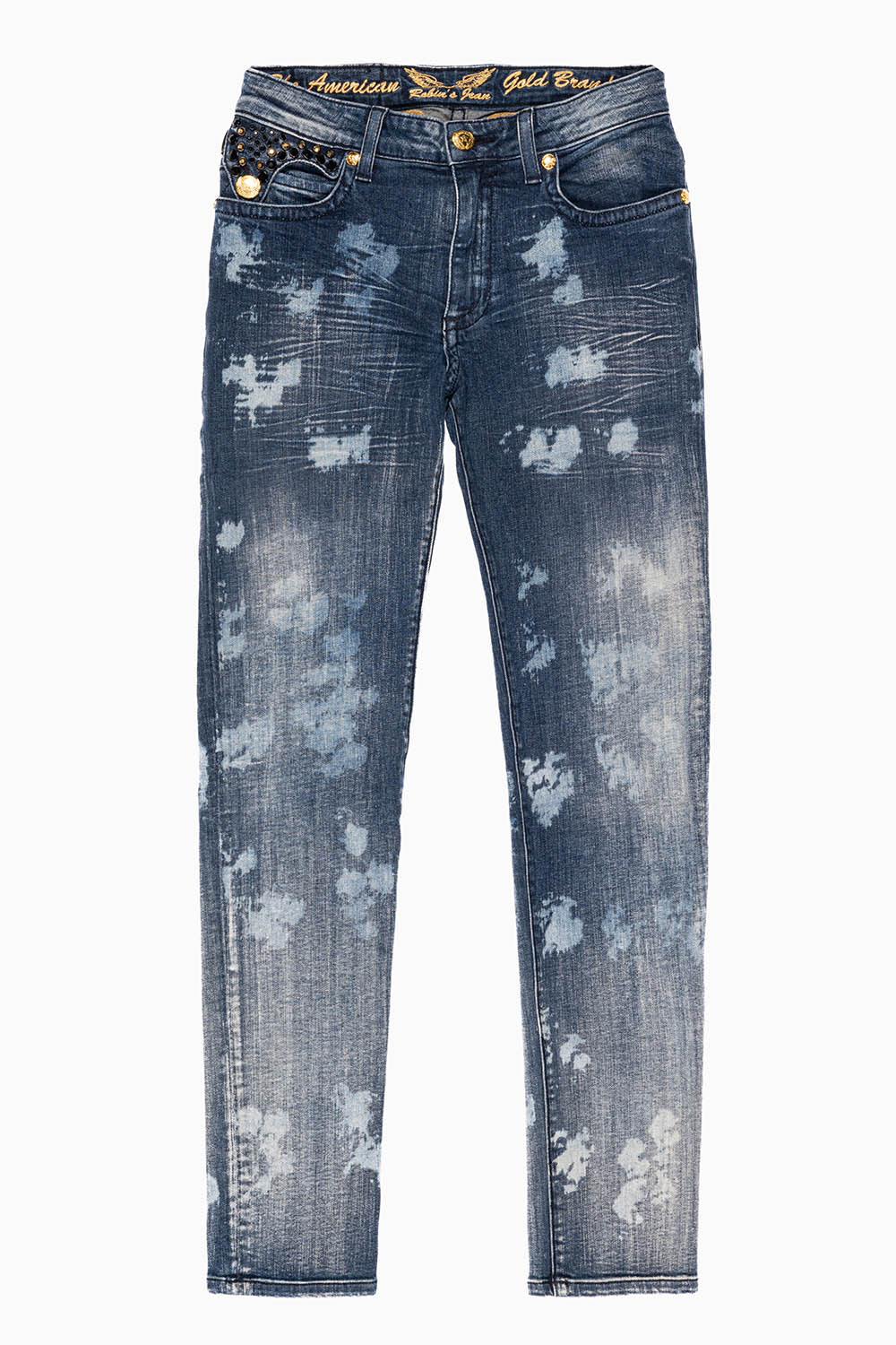 KILLER FLAP MENS SKINNY JEANS IN NEW JAPAN MEDIUM WASH WITH GOLD WINGS EMBELLISHED WITH CRYSTALS