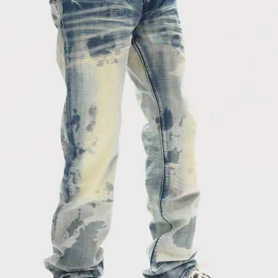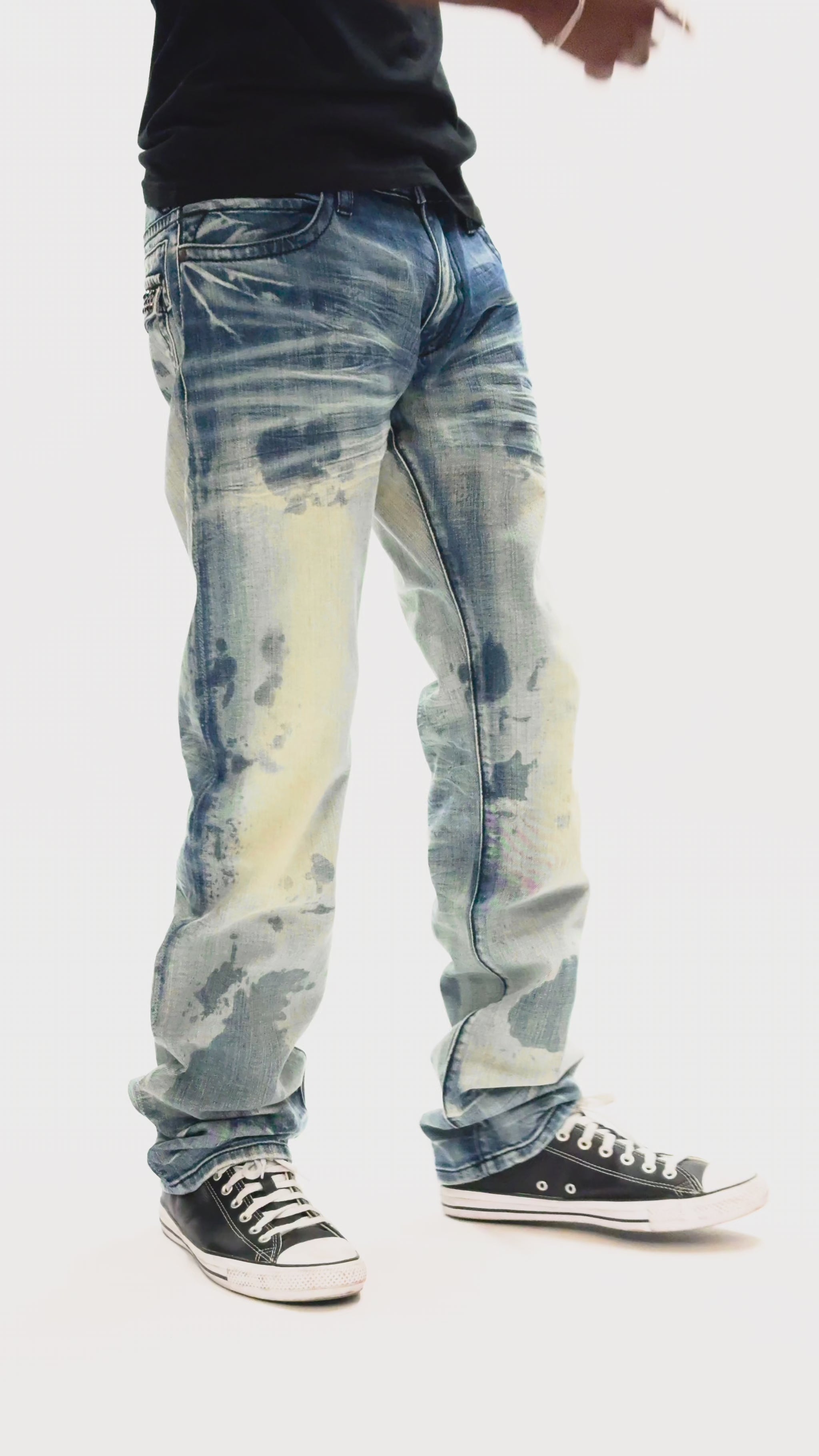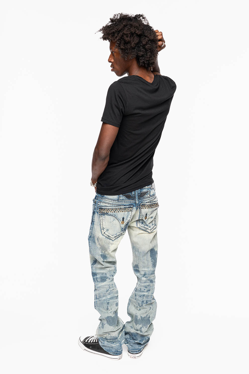 KILLER FLAP STRAIGHT LEG JEANS WITH CRYSTALS IN JAPAN LIGHT WASH