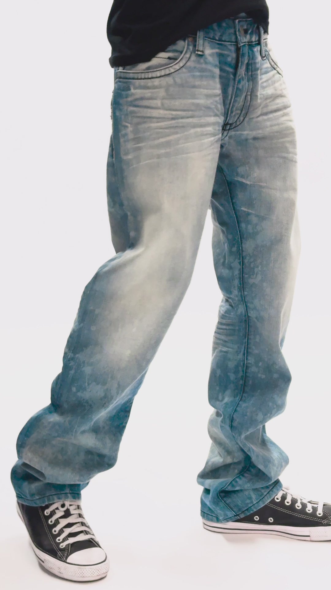 Robin's Long Flap Limited Edition jeans in Blue Aquarama wash. This jean comes in Robin's classic straight leg fit, is a specialty Aquarama wash and features Tan leather inserts on back pocket flap, fully embellished with Smoky Topaz crystals and copper Nailheads. These jeans are constructed using a premium rigid denim.
