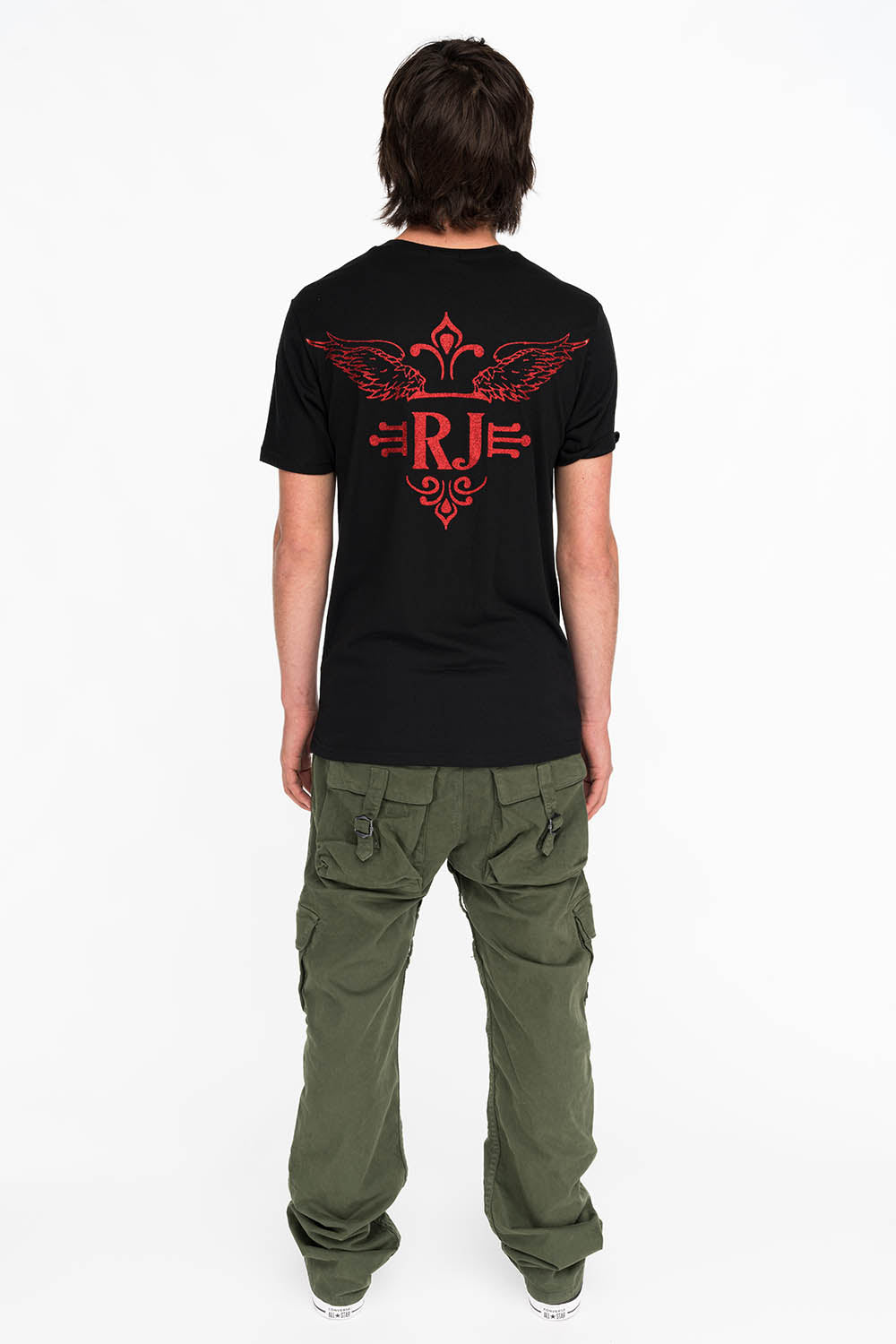 RED GLITTER FLEUR TEE WITH WINGS ON BACK IN BLACK