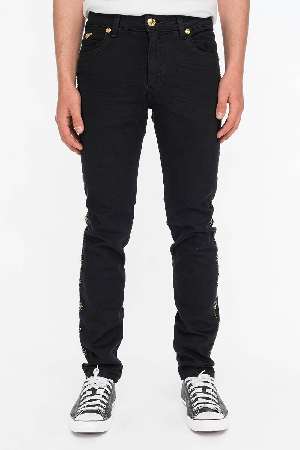 YUMA SKINNY MENS JEANS IN BLACK WITH GUNSLINGER CRYSTAL MOTIF