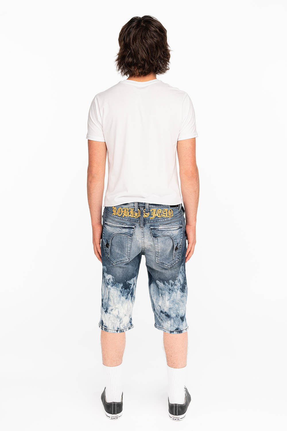 Robin's Killer Flap shorts in Cloud Blue wash, with gold O.E. script. These shorts feature Robin's signature Killer Flap rear pockets, they are classic fit, and constructed using lightweight premium stretch denim for both comfort and style.