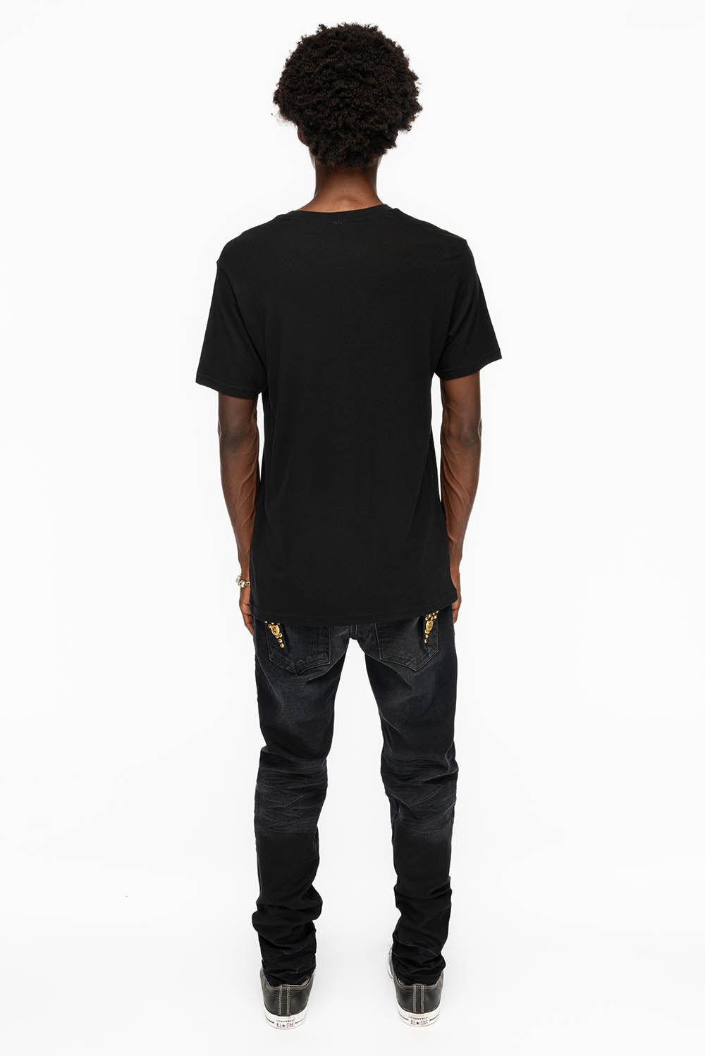 KILLER FLAP SKINNY MENS JEANS IN F_UP BLACK WITH FULL GOLD CRYSTALS