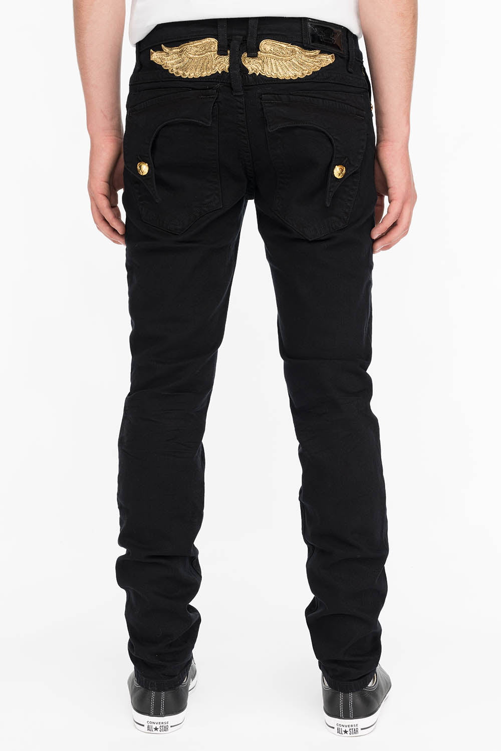 KILLER FLAP MENS SKINNY JEANS IN BLACK WITH GOLD WINGS