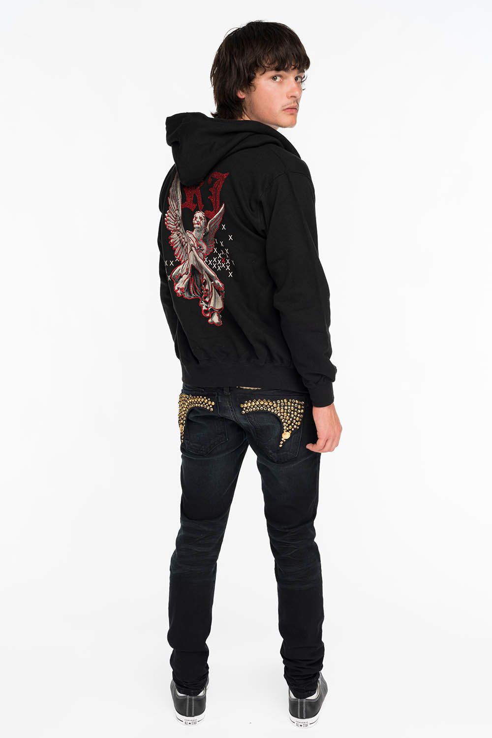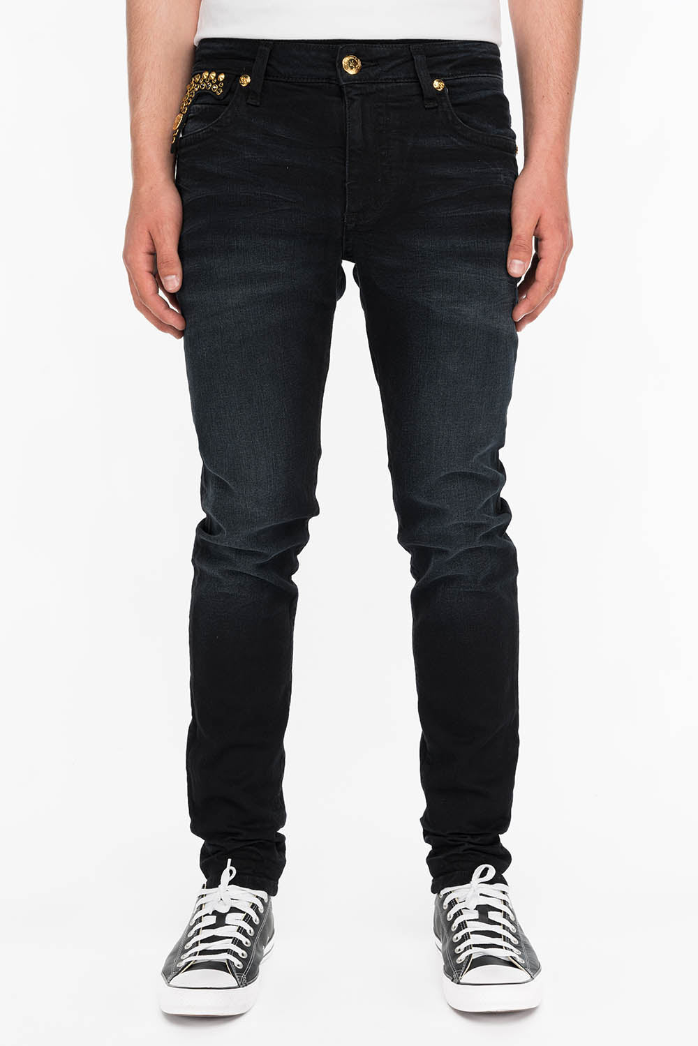 KILLER FLAP MENS SKINNY JEANS IN F_UP WITH CRYSTAL AND SPIKE STUDDING
