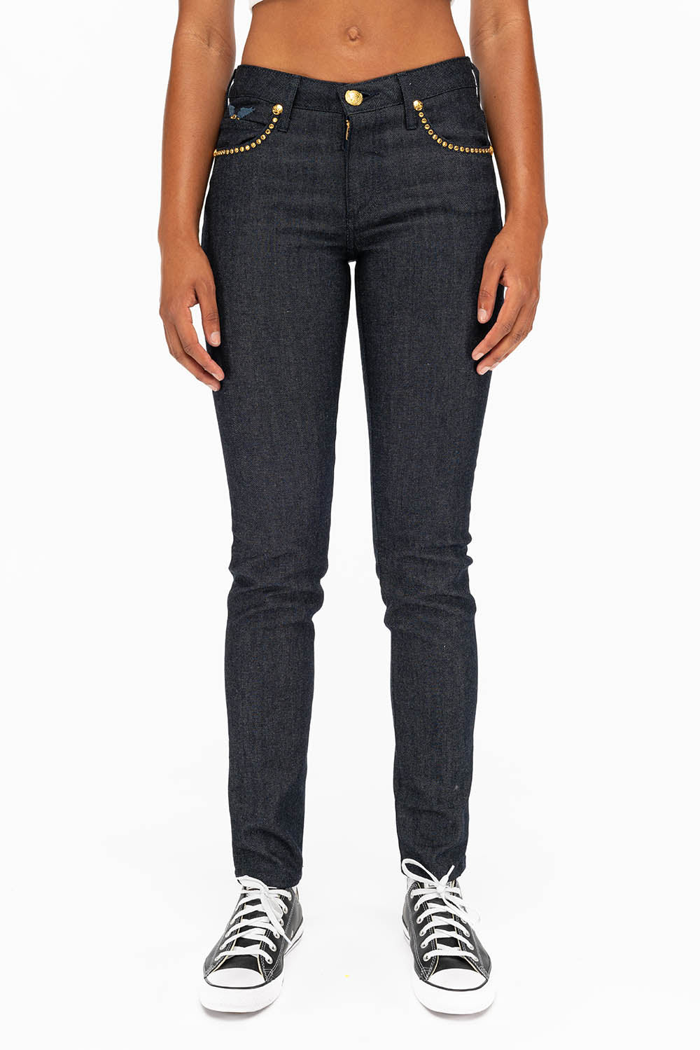 WOMENS CLASSIC 5 POCKET SKINNY JEANS WITH GOLD CRYSTALS IN RAW