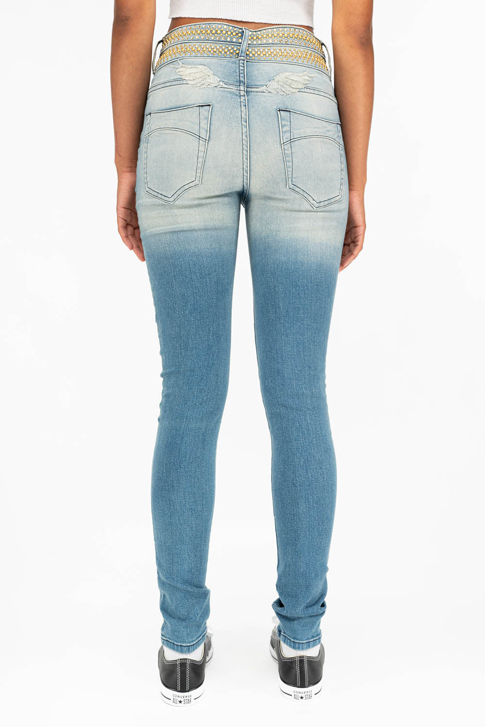 ROBIN'S DOUBLE WAIST SKINNY IN ANTIQUE LIGHT BLUE WITH CRYSTALS