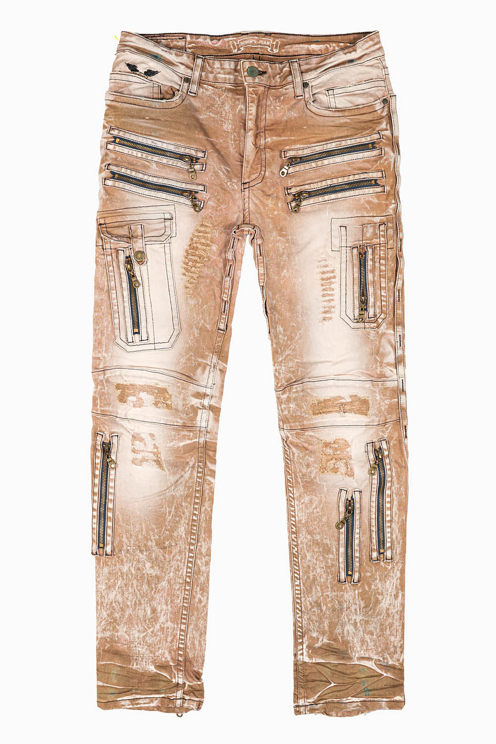 Robin’s New Biker jeans Amaretto Destroy Backing wash with Blk wings.This fit is perfect blend of moto detailing, combined with styling of your skinny jeans.This pants are constructed using premium stretch denim for both comfort and style