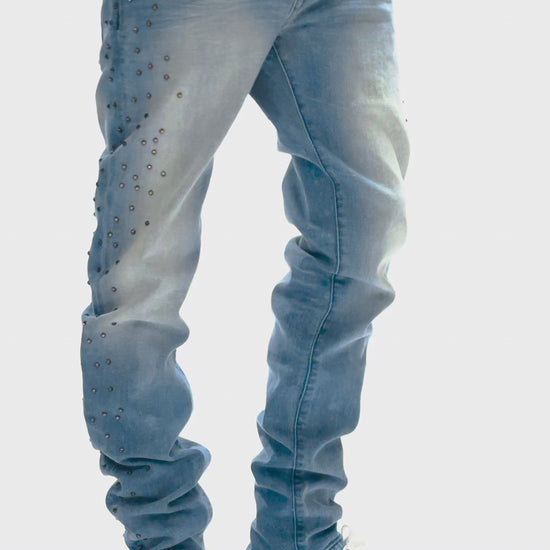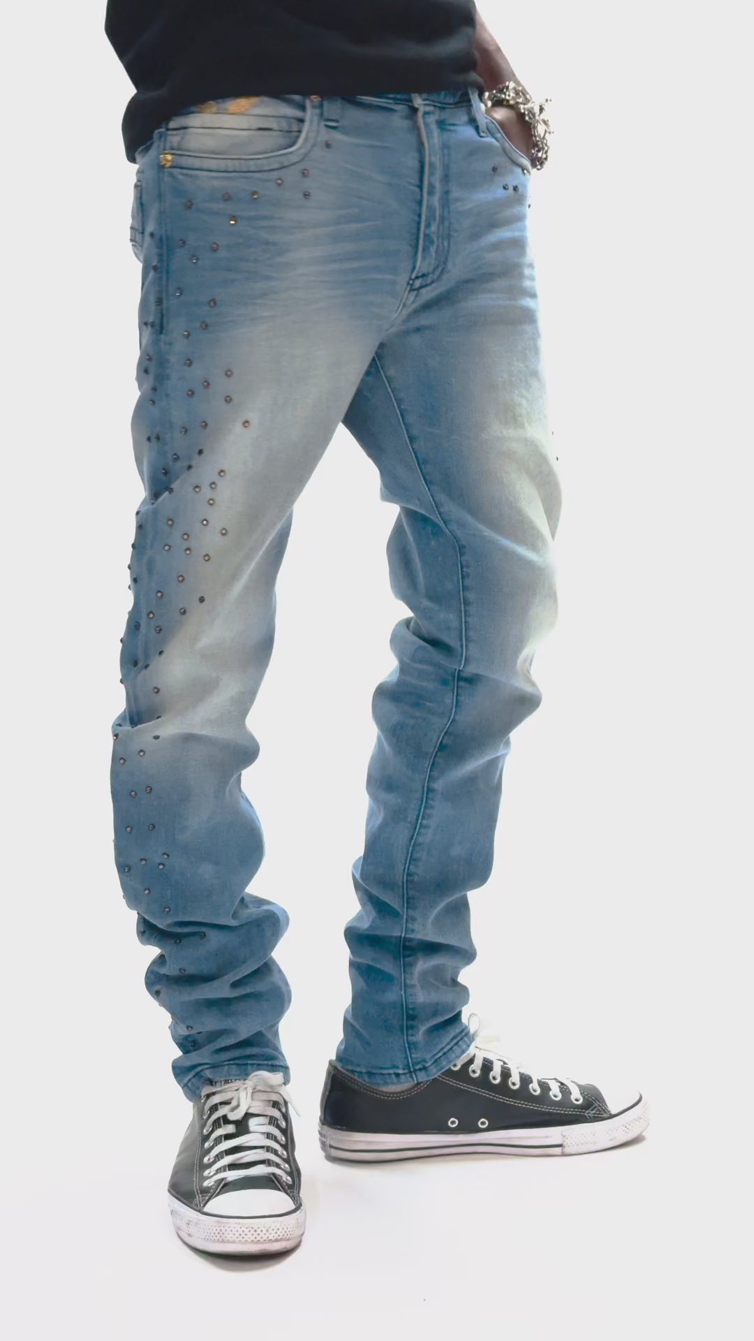 SKINNY JEAN IN BLUE 5D LIGHT WASH EMBELLISHED SIDE LEGS WITH CRYSTALS