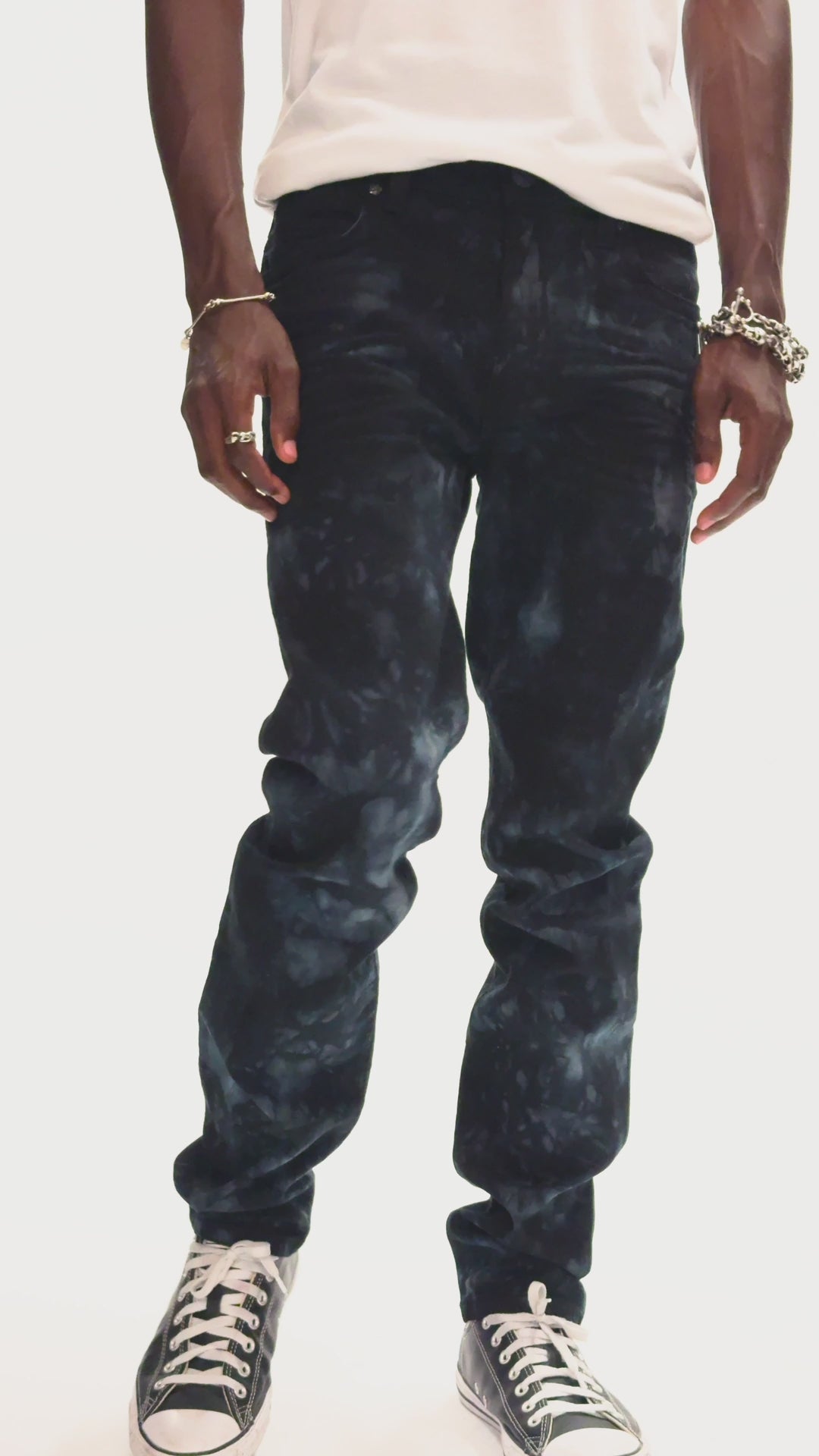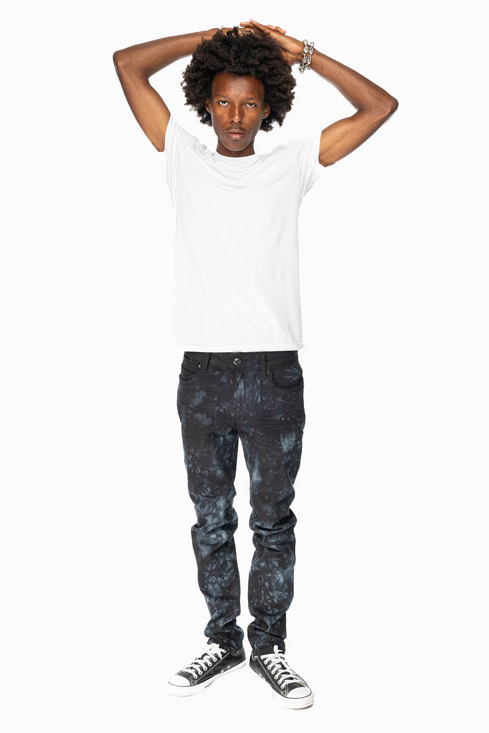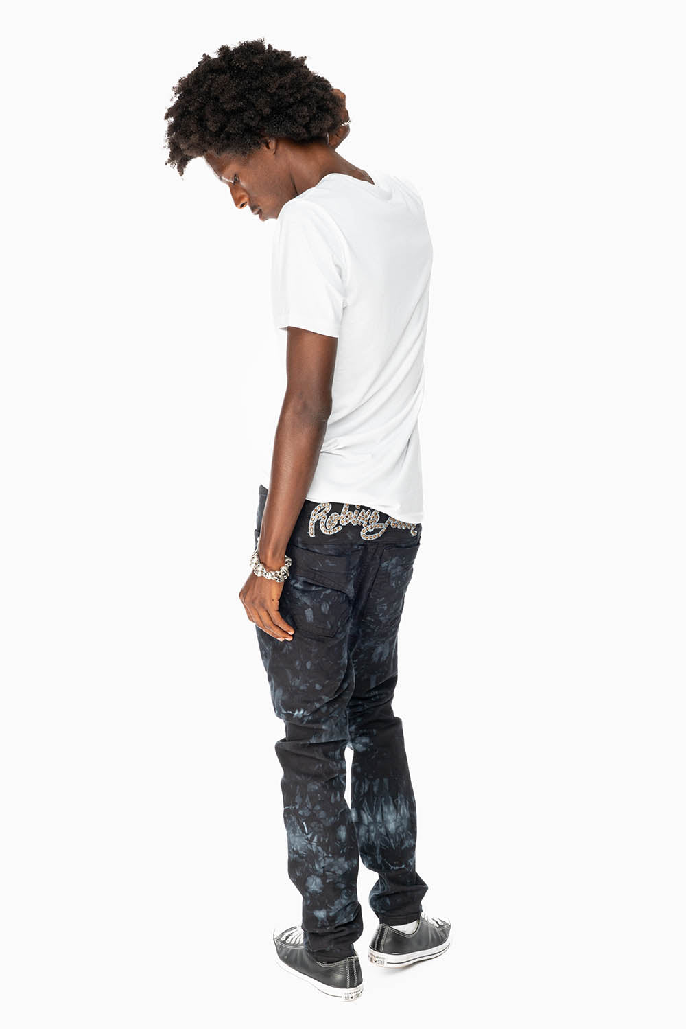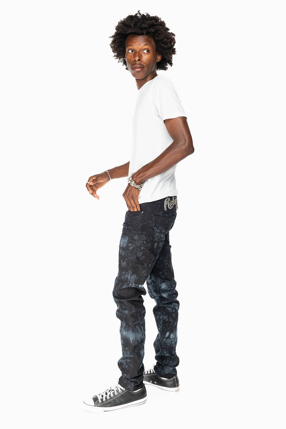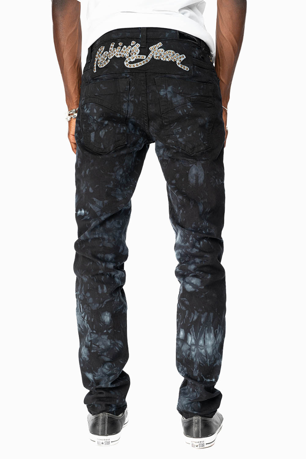 SKINNY MENS JEANS IN ASTRO BLACK WITH CHAIN STICH EMBROIDERY LOGO EMBELLISHED WITH CRYSTALS