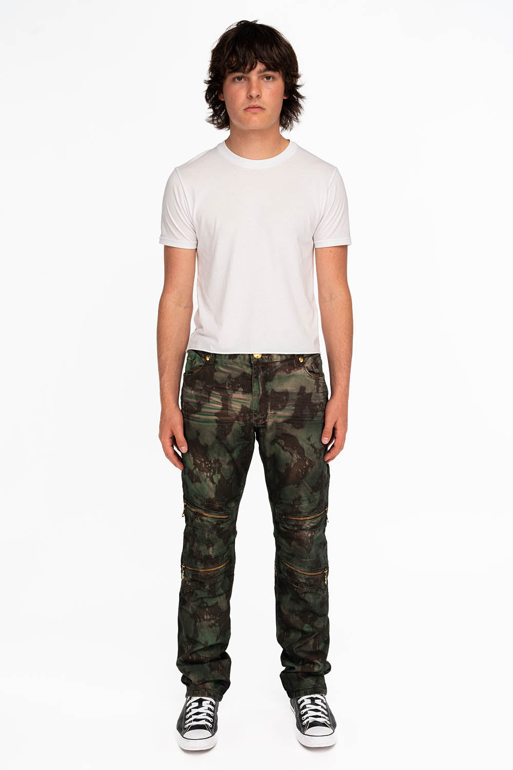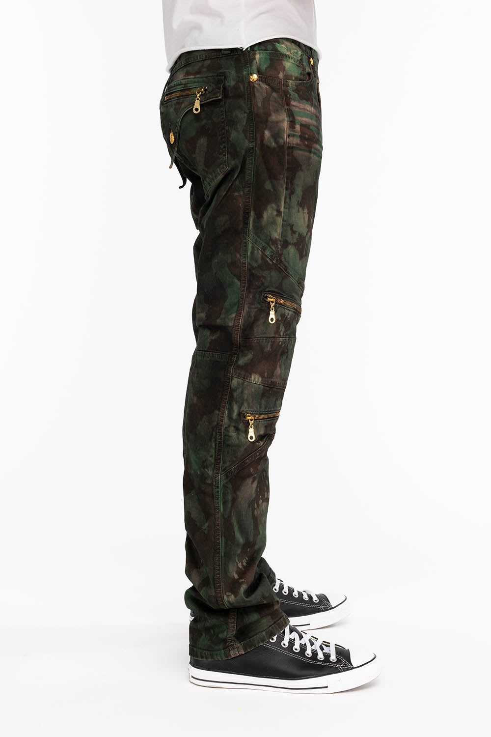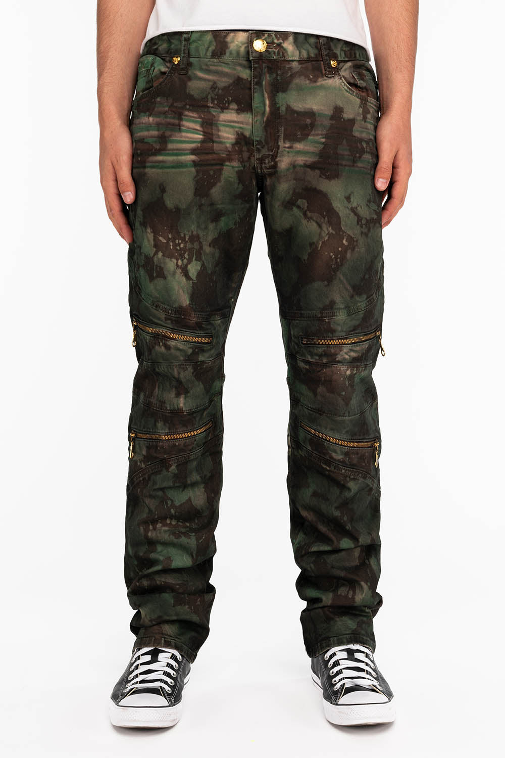 MENS BIKER JEANS IN TIE DYE CAMO GREEN