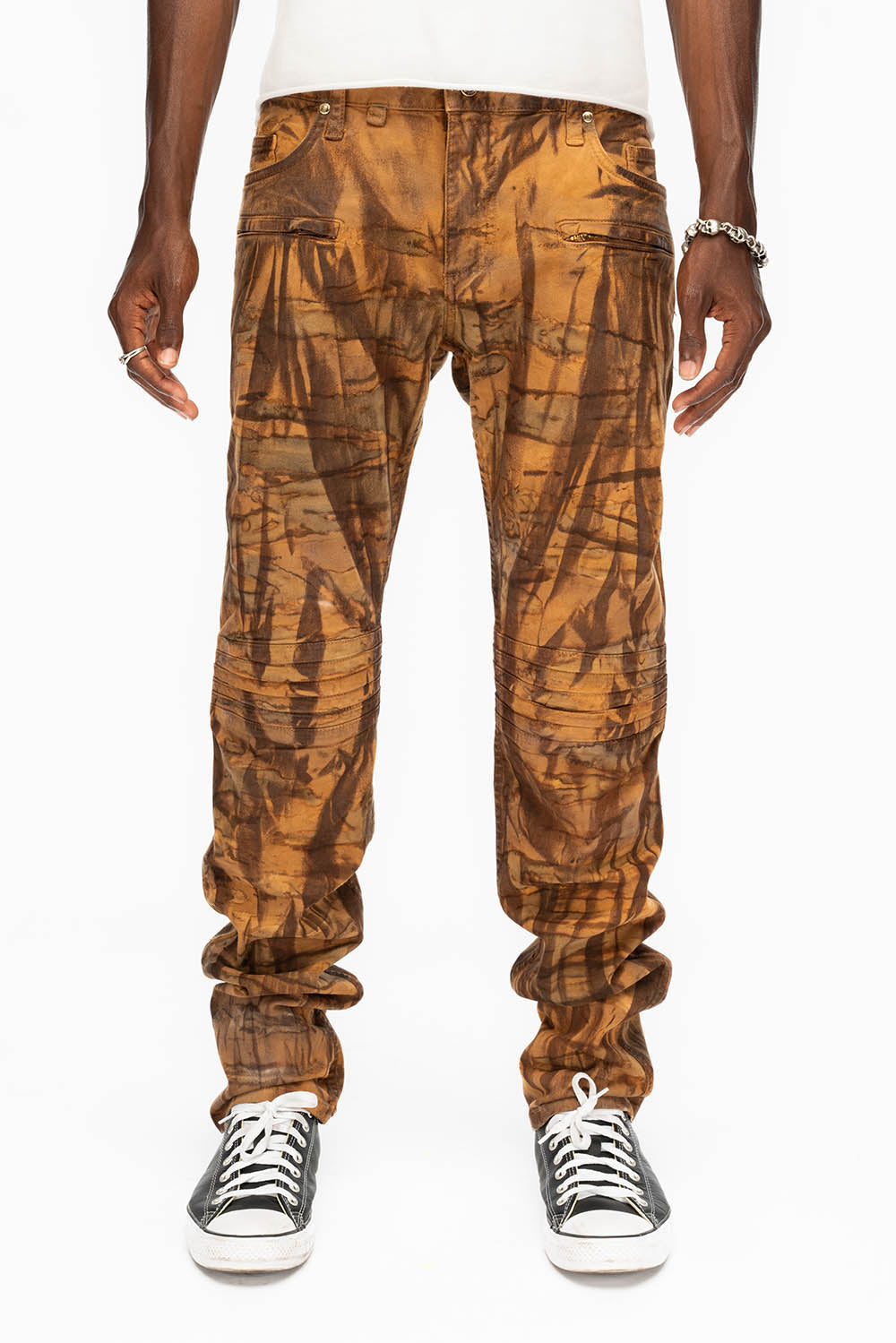 MENS MOTO BIKER JEANS IN BROWN ORANGE WASH