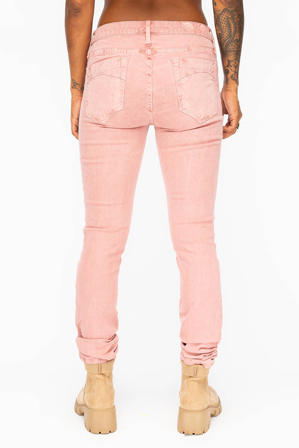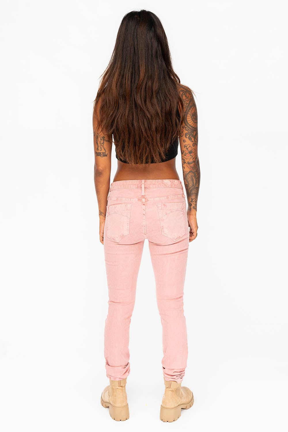 Robin's skinny Jane mid rise in Strawberry pink color. This jean is skinny fit and is constructed using premium ultra soft stretch poplin fabric for superior comfort and style.