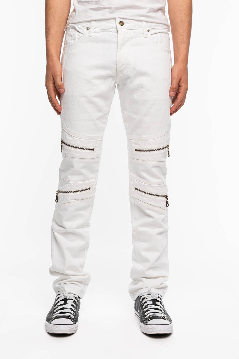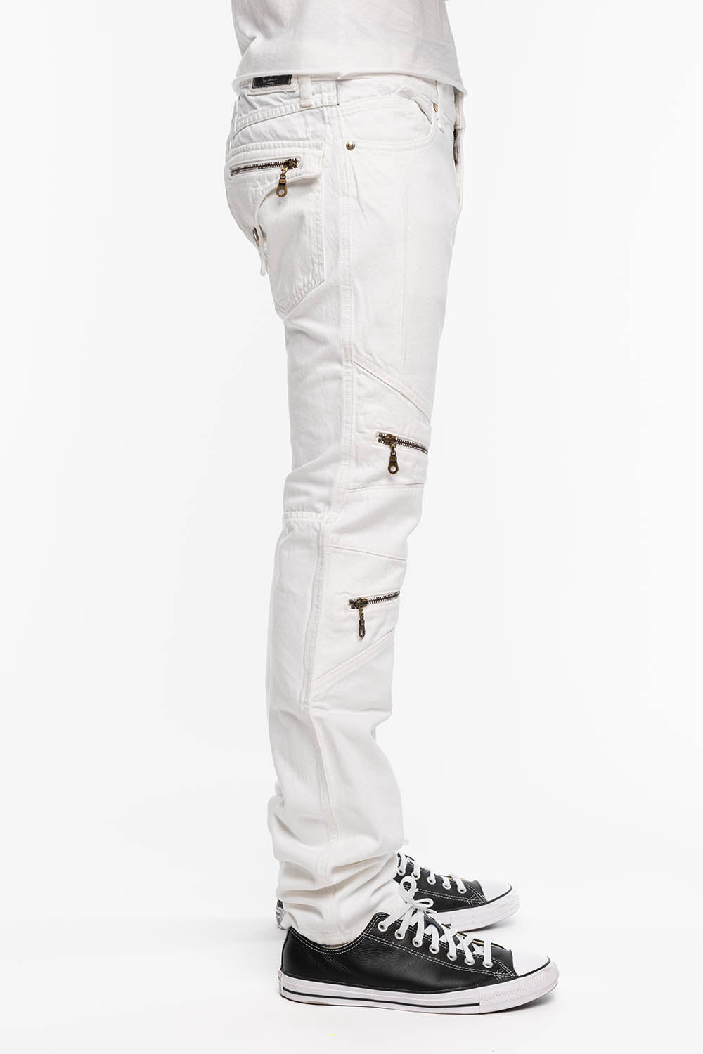 MINI FLAP MENS BIKER JEANS IN WHITE