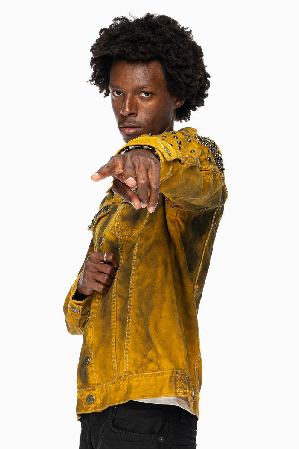 VINTAGE MUSTARD YELLOW JEAN JACKET WITH LIGHT CONTRAST STITCH WITH SPIKES