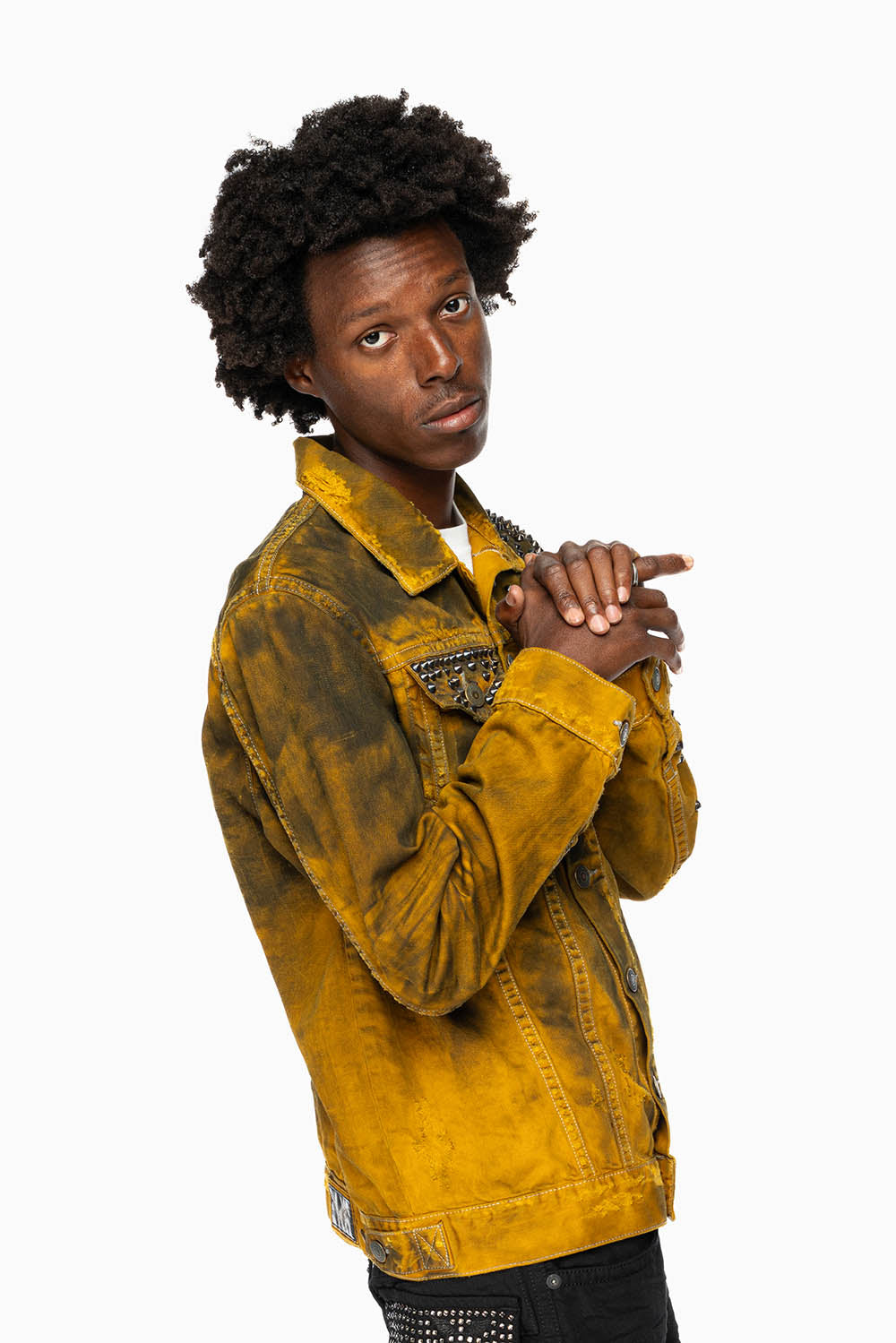 Robin’s classic Jean Jacket in Mustard Black Spray Wash with light contrast stitching and massive rock'n'roll style embellishment. This jean jacket is constructed using premium rigid denim for both style and durability and comes with tonal embroidered logo wings on the back.DETAILS & FIT