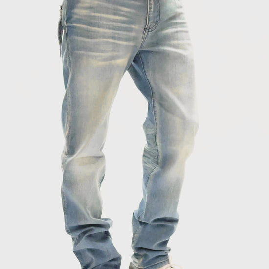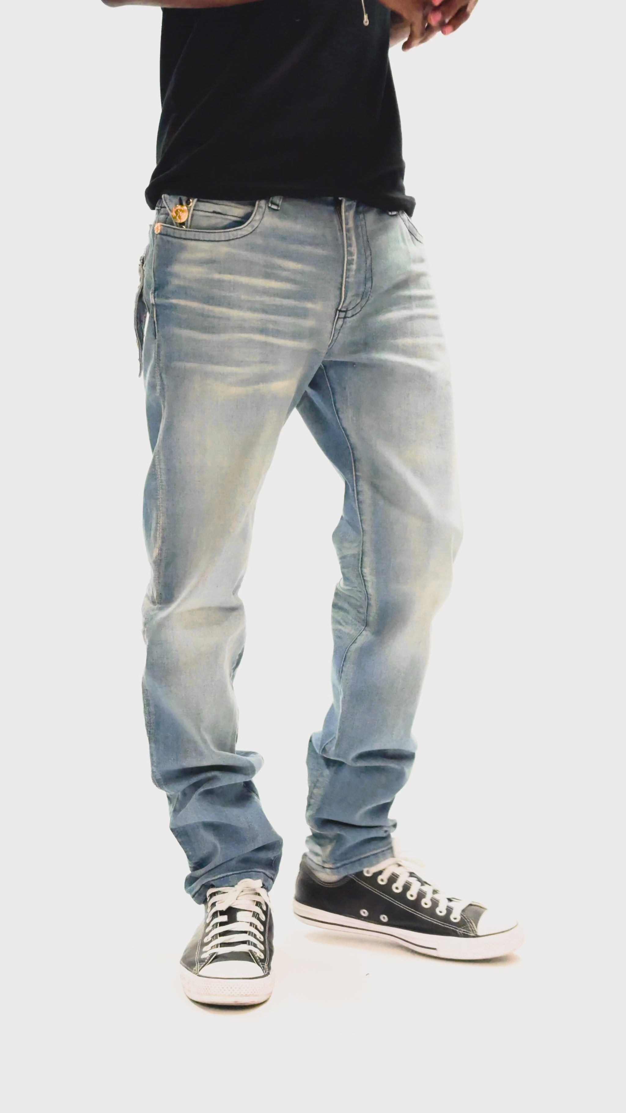 ZIPPER KILLER FLAP MENS JEANS IN ELROY MEDIUM WASH WITH X- LARGE CRYSTALS